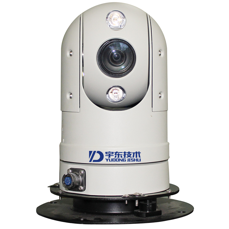 云臺具有多種安裝方式 底部減震器,配合車載云架,安裝于車頂使用 底部強力磁盤,無需在車頂安裝車載支架,直接強力吸附在車頂,裝卸方便,即裝即用 采用高集成度8位處理器,極低功耗,超強穩定 采用0.9°精密電機驅動,低速平穩,運行平滑無抖動 選用工業級元器件,適合各種極惡天氣 結構設計精巧,高強度鋁合金精鑄外殼,抗沖擊、防腐蝕 可存儲256個預置位,數據斷電記憶,上電后自動回到斷電前的原始狀態 可智能設置六條巡航軌跡、四條線掃命令、一條花樣掃描功能 帶歸守位功能,可歸位為軌跡、線掃、預置位 防護等級達IP66,支持三級防雷、防浪涌 紅外夜視:采用進口陣列紅外燈,使用壽命可達30000小時,夜視距離50-80米 網絡高清:云臺支持主流百萬數字高清一體機芯及高清SENSOR實現高清圖像畫面采集,兼容主流高清 平臺且無縫對接,最高支持1080P輸出,支持雙碼流及高清抓拍,支持IE瀏覽,可搭載4倍,10倍,20倍,25倍,30倍網絡攝像機 產品應用:現場直播/移動執法/城市治安/視頻會議/城管治安執法/特種巡邏/智能崗亭